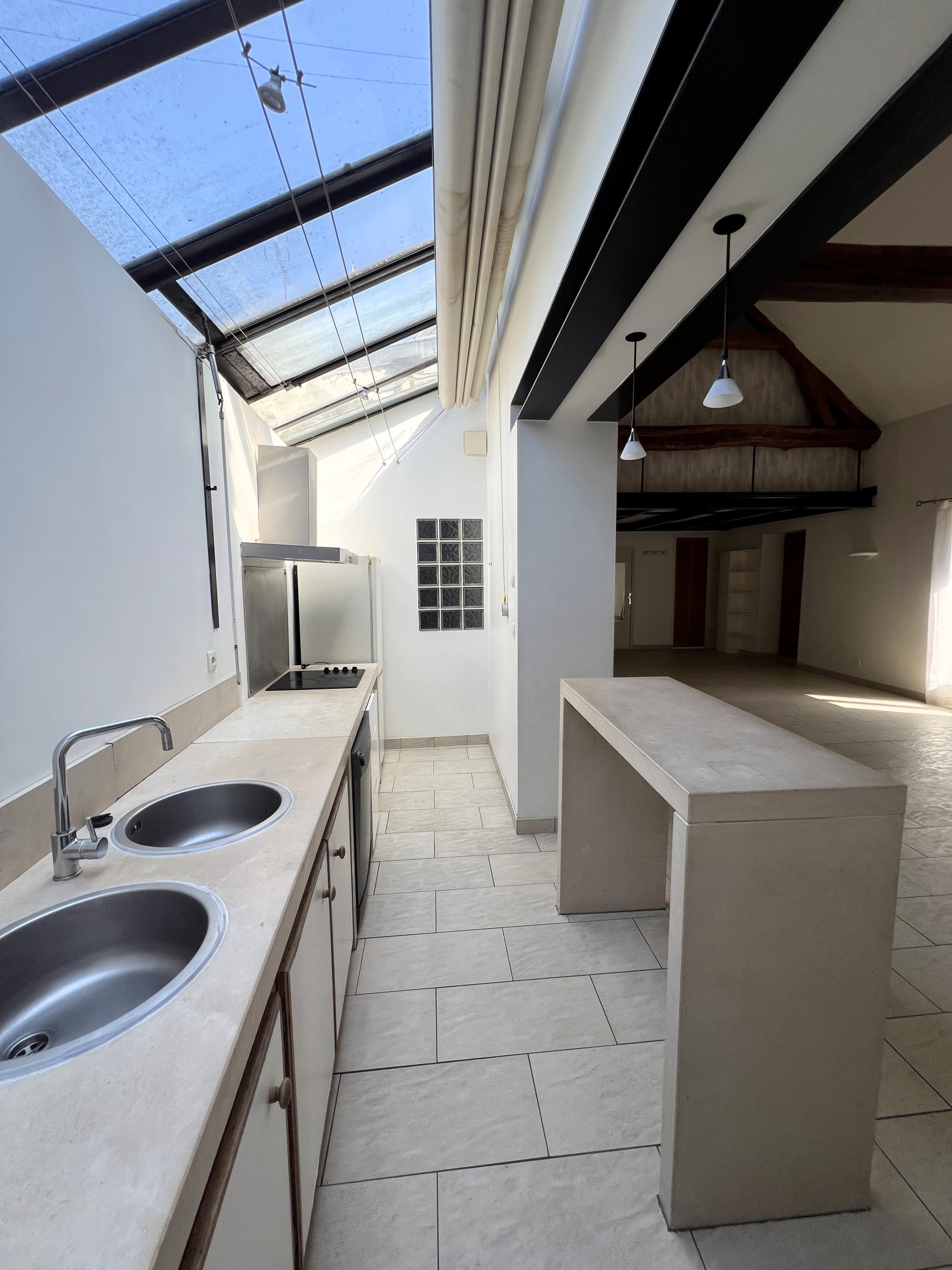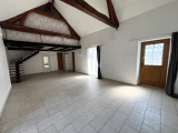 Elle propose, de plain-pied, une cuisine équipée ouverte sur un salon cathédrale de + 48m² avec cheminée, une chambre, une salle de bain, des toilettes. A l'étage, une chambre double pouvant être cloisonnée.